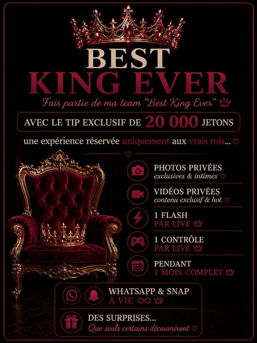 - Fait parties de ma team « My Best King Ever » en faisant le fameux tip de 20 000 jetons et reçois toute mon attention ainsi que beaucoup de cadeaux qui pourront te surprendre
